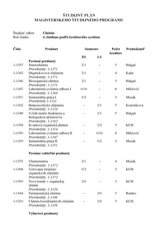 der Masterstudien „Chemie“ und „Technische Chemie“ gewählt werden. Für diese 6